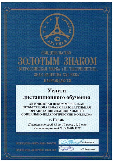 Золотой Знак качества подтверждает, что поступая в наш колледж, вы выбираете одни из лучших дистанционных* образовательных услуг на рынке.