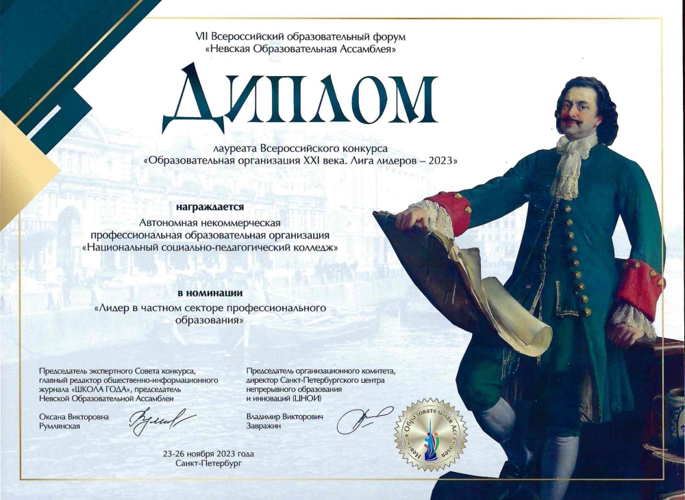 Национальный социально-педагогический колледж (НСПК) принял участие в ежегодном конкурсе «Образовательная организация XXI века. Лига лидеров – 2023» и стал лауреатом в номинации «Лидер в частном секторе профессионального образования».