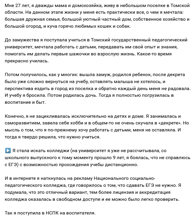 Отзыв Натальи в сообществе НСПК в ВКонтакте
